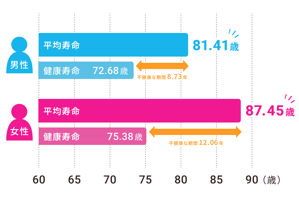 健康寿命とは、健康上の理由がなく日常生活を快適に過ごせる期間のことです。